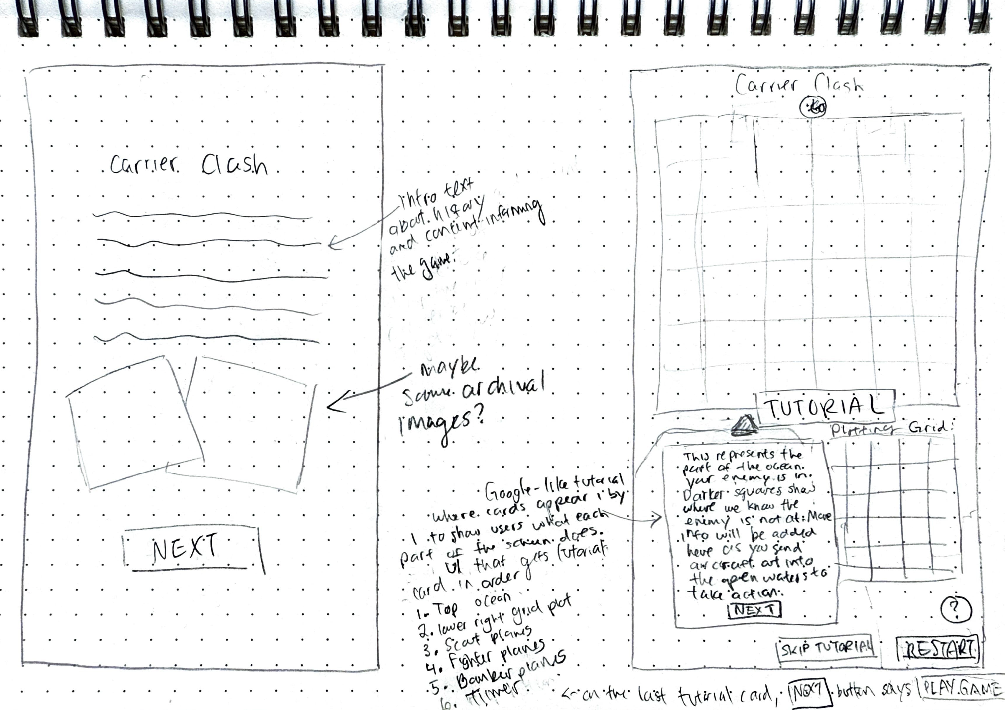 With the sketches and historical information, I created game flows for Carrier Clash and Stop the Tokyo Express.